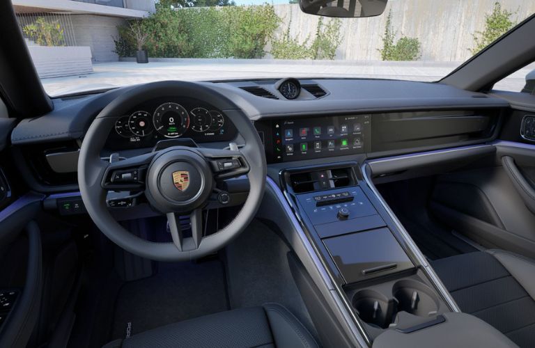 Inside the cabin, the Porsche Driver Experience places essential controls and information exactly where the driver needs them. A modern display layout paired with intuitive controls enhances usability while keeping attention focused on the road. Integrated Porsche Connect services expand functionality with real-time information, remote vehicle access, and effortless smartphone integration through Apple CarPlay®, including access to the My Porsche App. Rear passengers enjoy generous legroom and headroom, along with supportive seating designed for long journeys. Available enhancements such as seat ventilation and massage functions elevate comfort, making the Panamera 4 E-Hybrid an excellent choice for both daily driving and extended road trips.